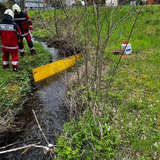 Nach dem gestrigen Einsatz wegen einer Brandmeldeanlage rückten wir heute, kurz nach halb vier, zu einem mal etwas anderen Einsatz aus. Ein Fahrzeug geriet aus noch unbekannten Gründen ins Rollen und rutschte einen Anhang hinunter. Da die Gefahr bestand, dass der Laufenbach durch Oel, Kühlflüssigkeit oder andere Flüssigkeit verschmutzt werden könnte, errichtete die Feuerwehr vorsorglich eine Oelsperre.